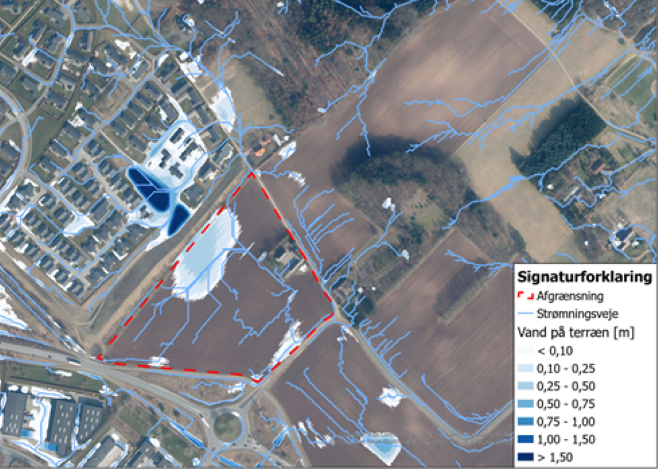 Den nordvestlige del af lokalplanområdet ligger inden for område med risiko for oversvømmelse fra ekstreme regnhændelser.