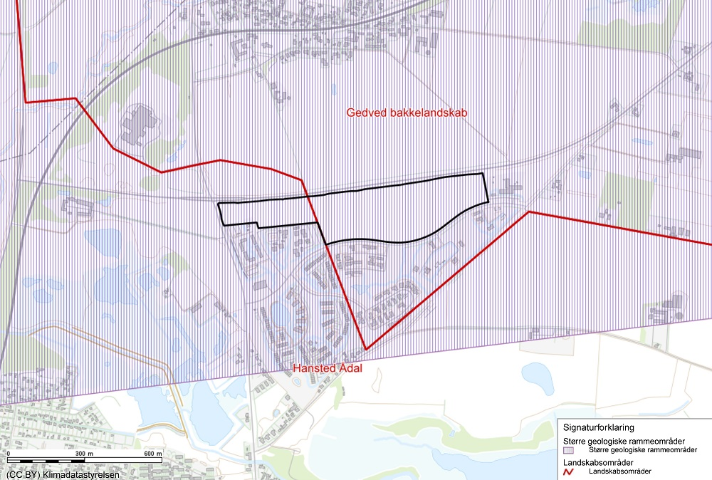 Lokalplanområdet strækker sig over to landskabsområder; Gedved Bakkelandskab og Hansted Ådal.