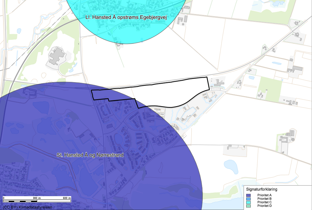Det vurderes for det konkrete lokalplanområde, at området ikke er truet af oversvømmelser fra Hansted Å og Nørrestrand. Der er dog, jf. retningslinje 8.1, udarbejdet en vandhåndteringsplan, der redegør for håndtering af ekstremregn i lokalplanområdet.