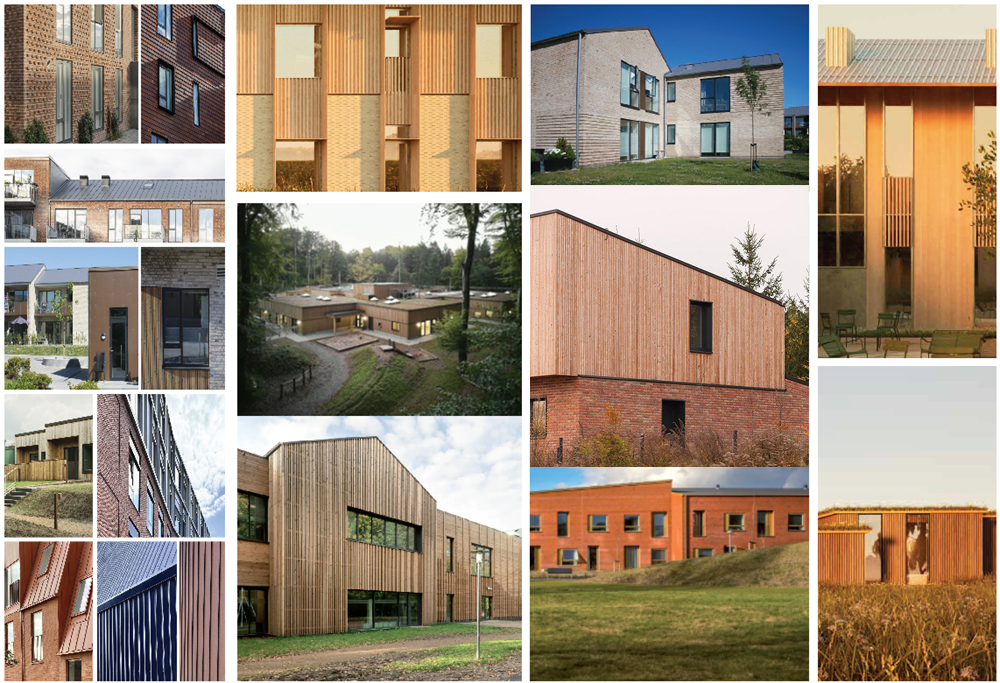 Inspirationsbilleder af materialer og udtryk. (Ginnerup Arkitekter, Erik Arkitekter)