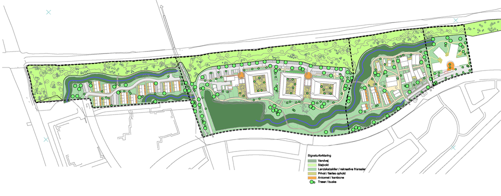 Kortbilag 9 Kortbilag 9A - Principper for grønne ubebyggede arealer. Kortbilag 9B - Beplantningsreferencer for støjvold, hovedvandveje, landskabskiler og rekreative arealer. Kortbilag 9C - Principper, beplantning inden for byggefelter omkring byggeri og gårdrum.