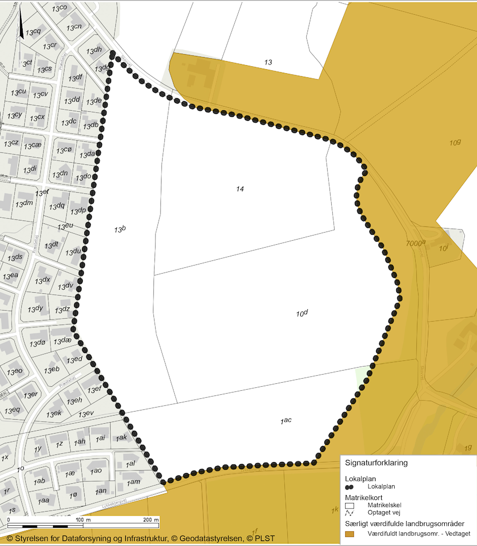 Lokalplanområdet grænser op til en udpegning af særligt værdifulde landbrugsområder. De særligt værdifulde landbrugsområder skal i videst muligt omfang friholdes for aktiviteter, der kan hindre landbrugserhvervets udviklingsmuligheder. Retningslinjen hindrer ikke aktiviteter, som er en del af den landbrugsmæssige drift som f.eks. etablering eller pleje af skov, natur osv.