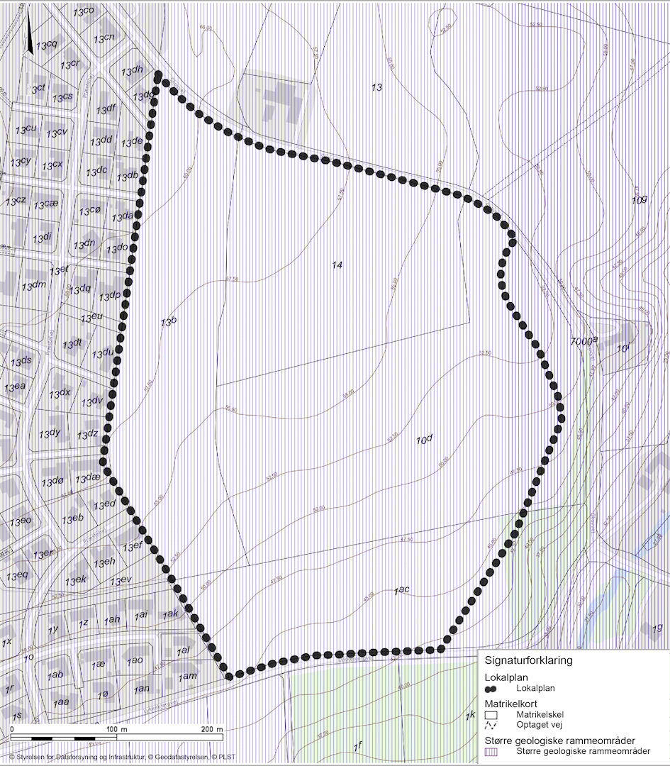 Lokalplanen placerer sig indenfor udpegningen af større geologiske rammeområder. Al planlægning skal ske under hensyntagen til retningslinje 3.7.1, som har til formål at sikre det overordnede landskab, og at byggeri og anlæg placeres og udformes under hensyntagen til landskabets geologiske kvaliteter. Derudover skal sikres, at de geologiske landskabsformer, deres indbyrdes overgange og landskabelige sammenhænge ikke forringes. Derved vil områderne beholde deres værdi for den landskabsgeologiske formidling.