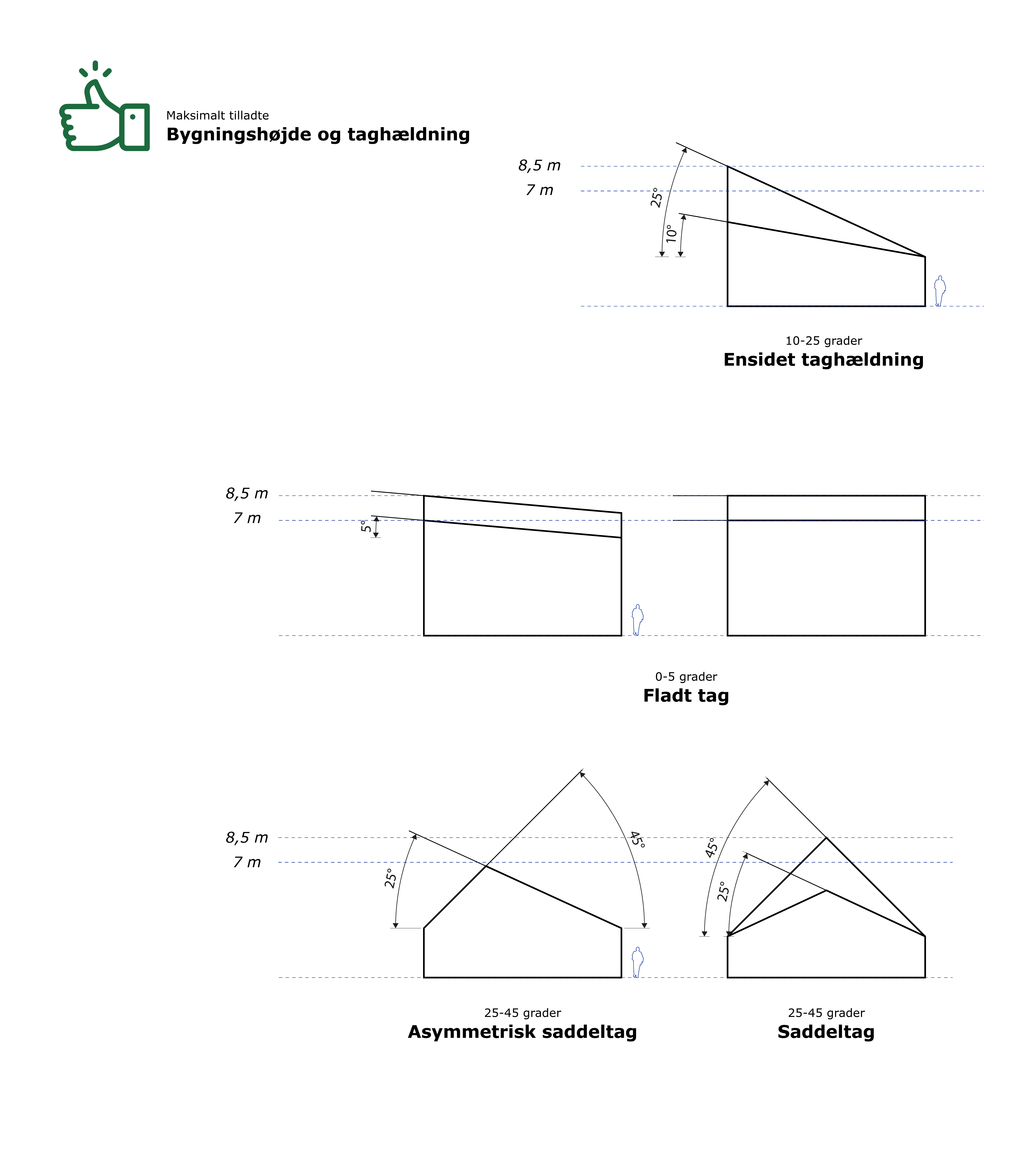Kortbilag 8A-8G danner grundlaget for de samlede principper, der understøtter gældende bestemmelser for lokalplanens forhold omhandlende delområder, typologi og placering.