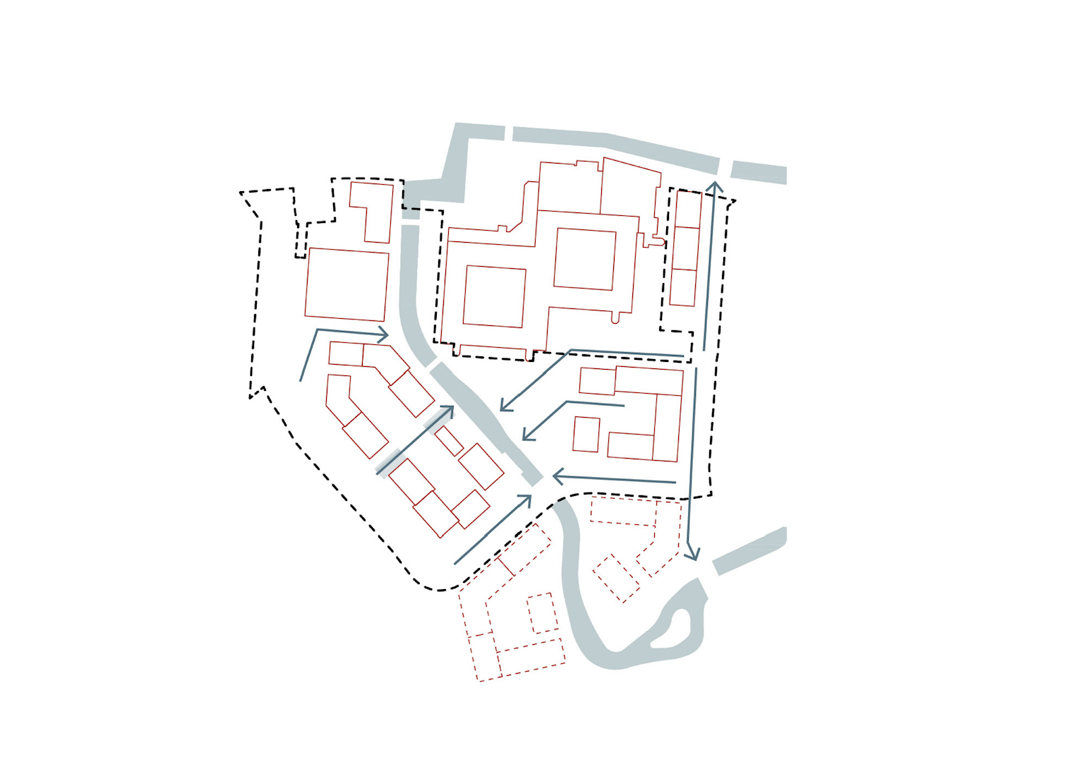 Kortbilag 10d, vandhåndtering primært på terræn (blå pile).