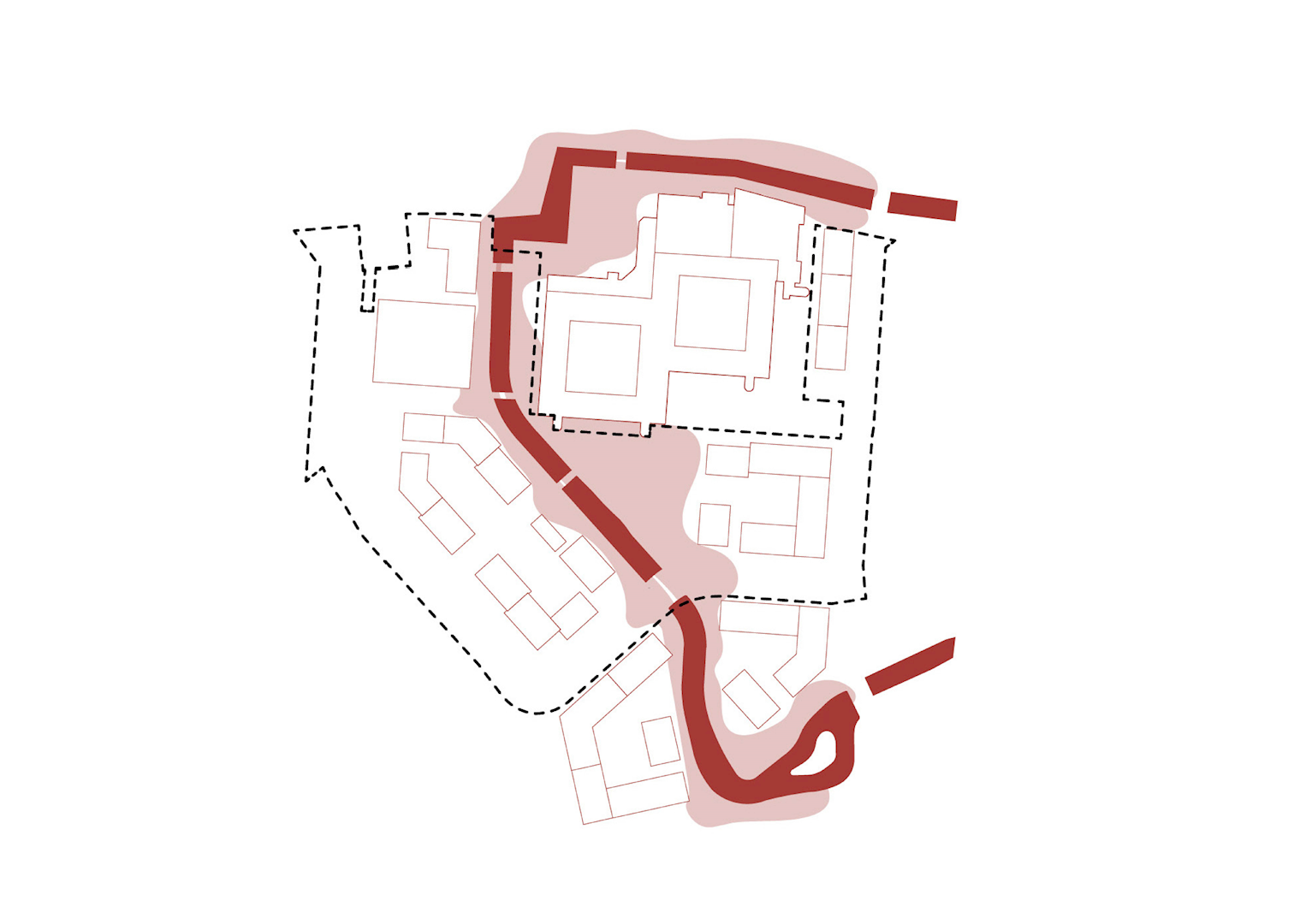 Kortbilag 10e, arealreservation til en fremtidig å (mørkerød markering).