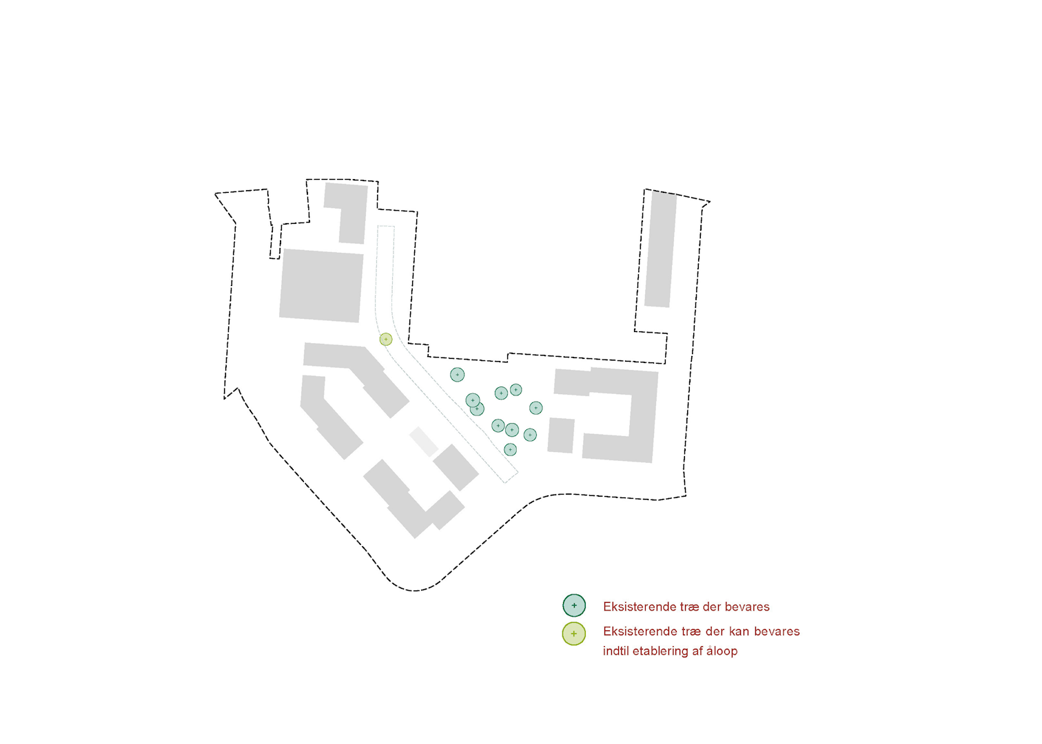 Kortbilag 10a, Træer der skal bevares (grøn markering).