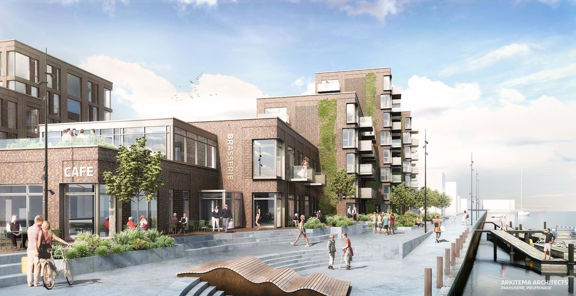 Visualisering der viser bebyggelsens og promenadens karakter.
