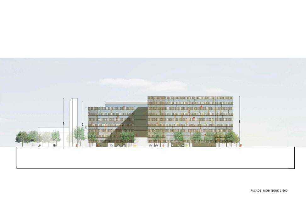Byggeriet vil fremstå med et moderne udtryk og må opføres som betonelement byggeri med brystninger. Betonfacadeelementer beklædes med natursten og-/ eller metalpaneler, som byder betonelementernes vandrette bånd.