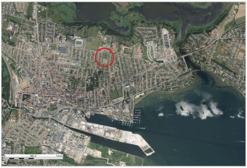 Området er beliggende i ca 1 km nordøst for Horsens midtby på højdedraget mellem Horsens Fjord og Nørrestrand. Set fra terræn er der stedvis fjordkig, og set fra de fremtidige boligers etager og tagterrasser vil der være mulighed for smuk udsigt over østbyen, Stensballe Bjerge og fjorden mod øst og sydøst. Terrænet inden for lokalplanområdet falder mellem 4 og 5 meter fra vest mod øst.
