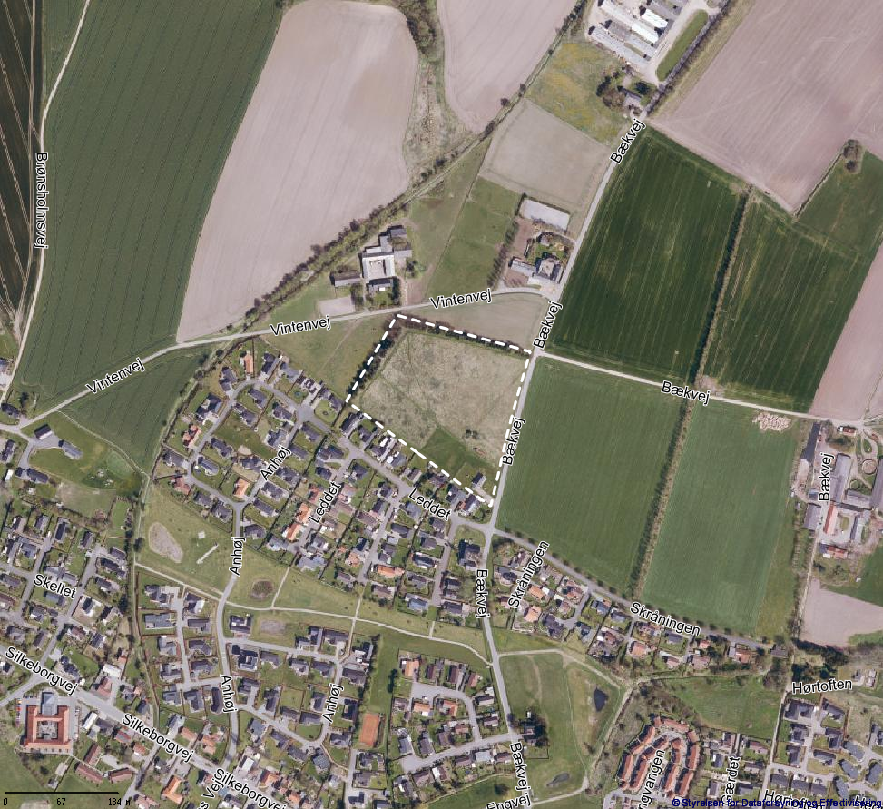 Arealet skråner let nedad, mod nordvest og er en del af et større bevaringsværdigt istidslandskab. Området ligger naturskønt i udkanten af byen, med udsigt over landskabet mod nord. Området ligger nu som uudnyttet mark med diverse vilde planter og enkelte buske (området indeholder ikke en naturkvalitet som beskyttet natur).