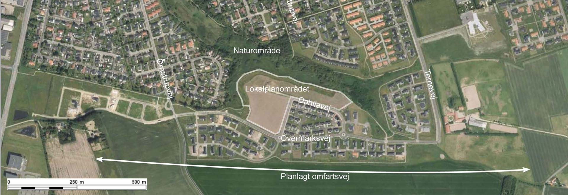 Dahliavej, der er lokalplanområdets "rygrad" har vejadgang til Overmarksvej, der løber mellem Ternevej og Ørnstrupvej.