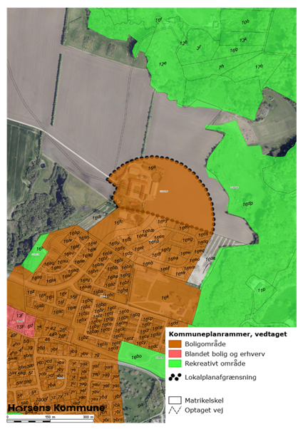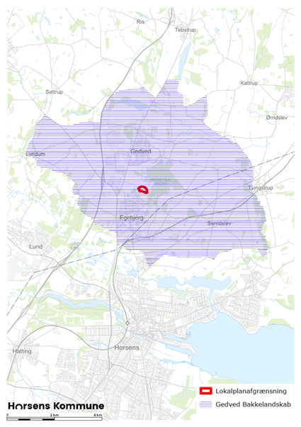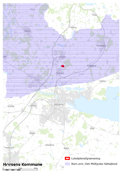 Iht. retningslinje 3.5.1. Horsens Kommunes inddeling i 17 landskabsområder danner det overordnede grundlag for planlægning og administration i det åbne land, og skal sikre, at de enkelte områders kvaliteter og karakteristika bevares og udvikles.