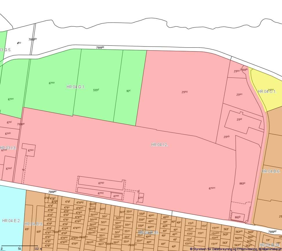 Eksisterende kommuneplanramme HR.04.I.2 - blandet bolig og erhverv (det lyserøde felt)