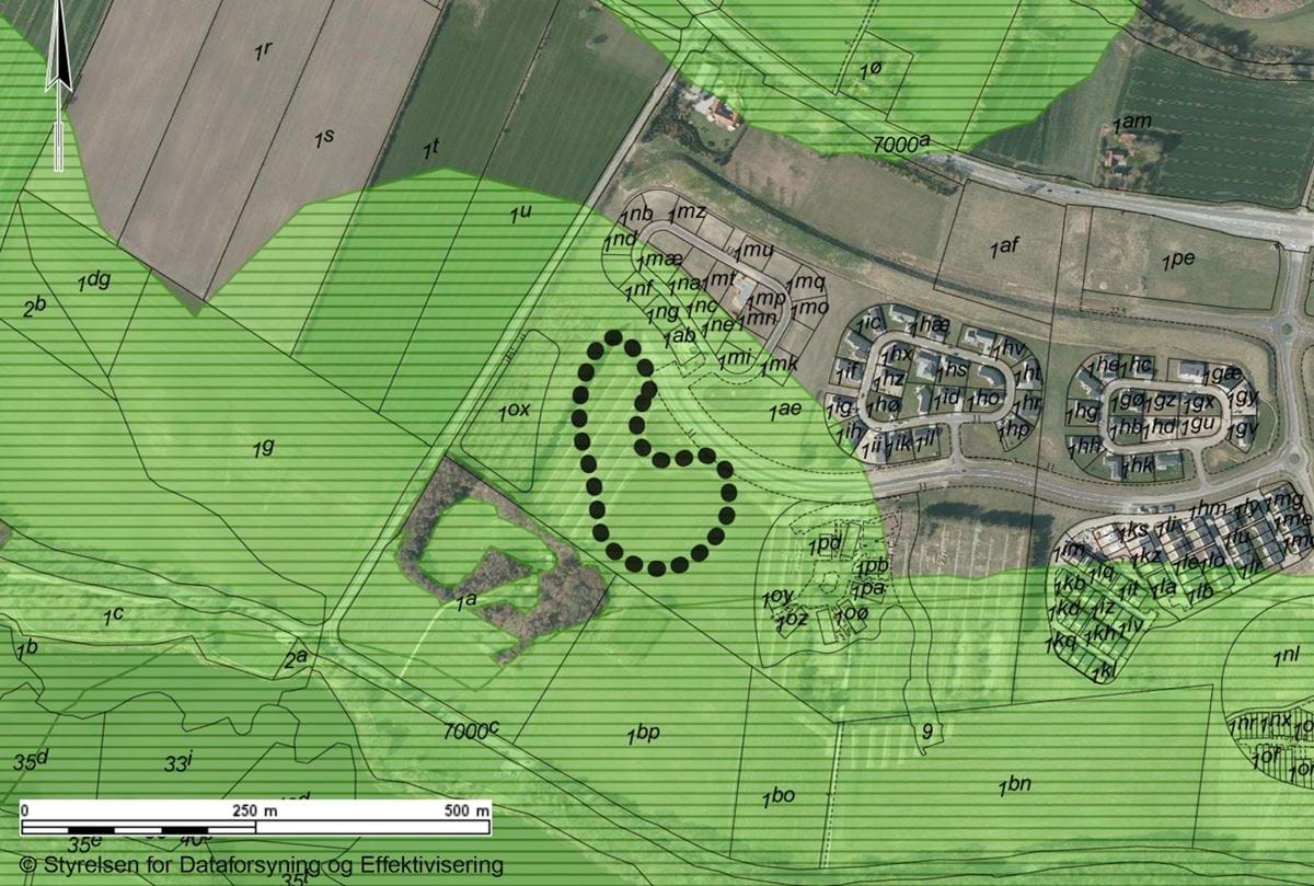 Skovbyggelinje for kommunal skov sydvest for lokalplanområdet.
