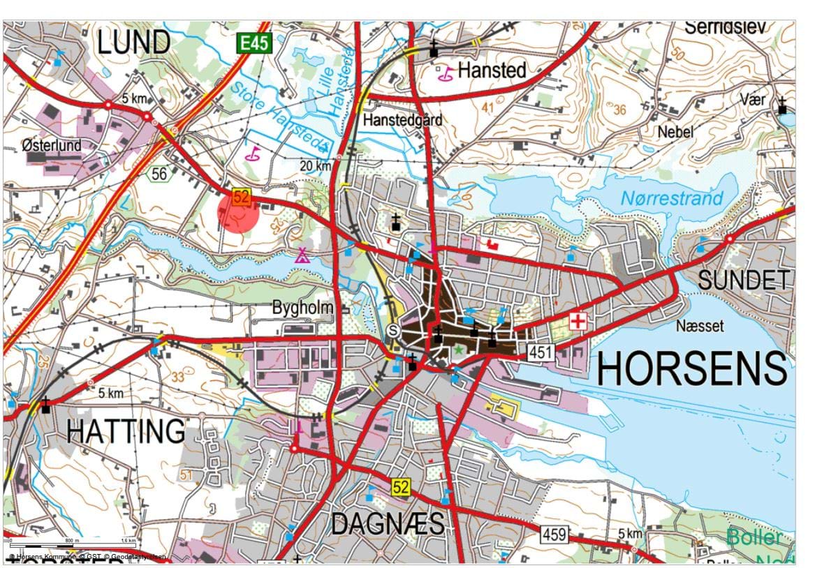 Lokalplanen omfatter således to delområder, adskilt af fordelingsvejen Bygholm Bakker.
