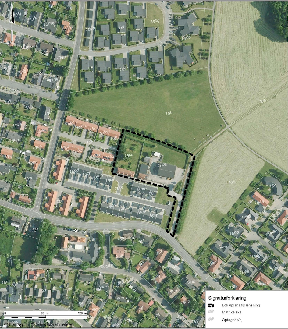 Kort over lokalplanområdet. Ortofoto er fra sommeren 2020.