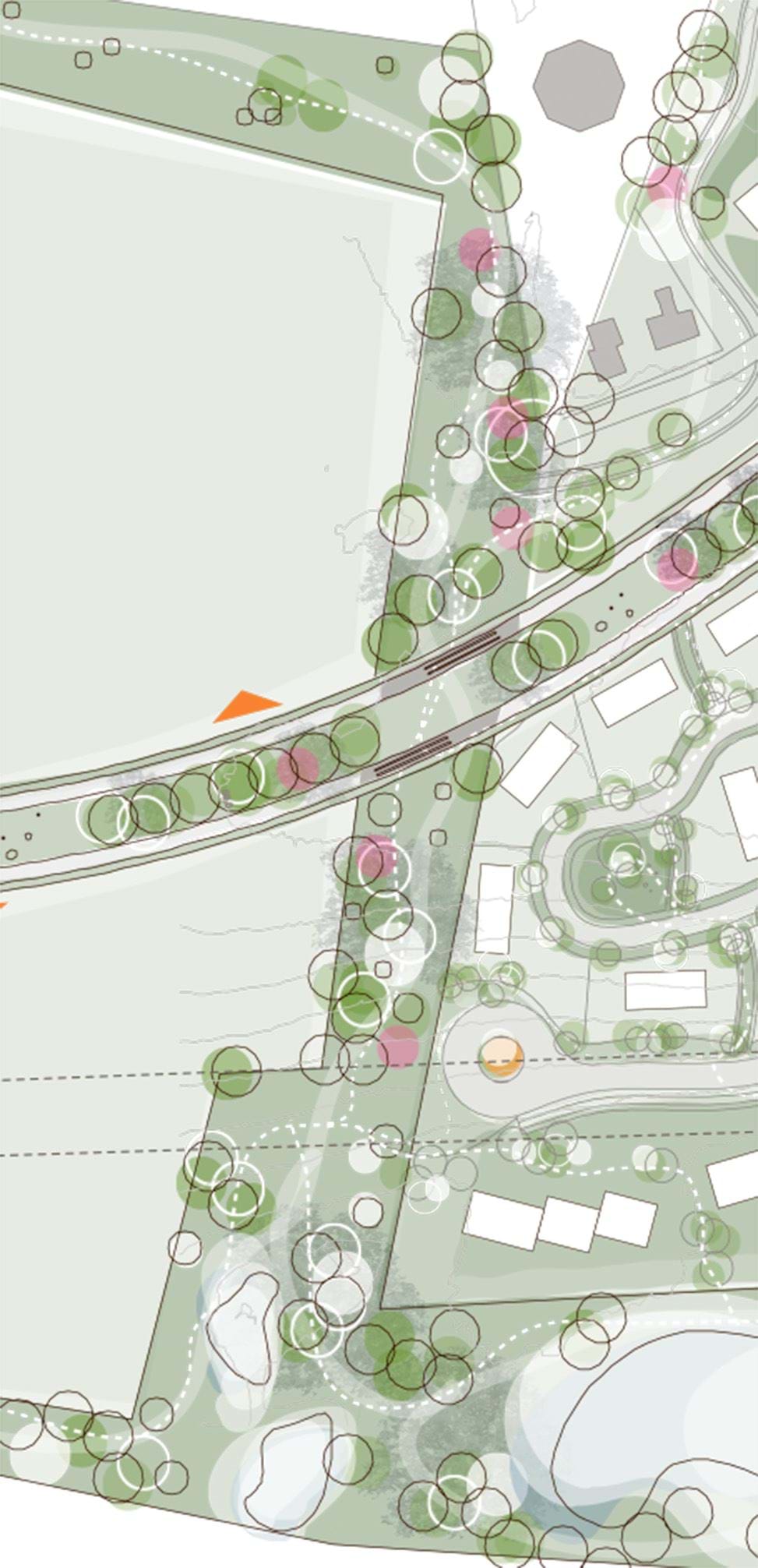 Eksisterende gamle løvtræer og småskove søges så vidt muligt bibeholdt.