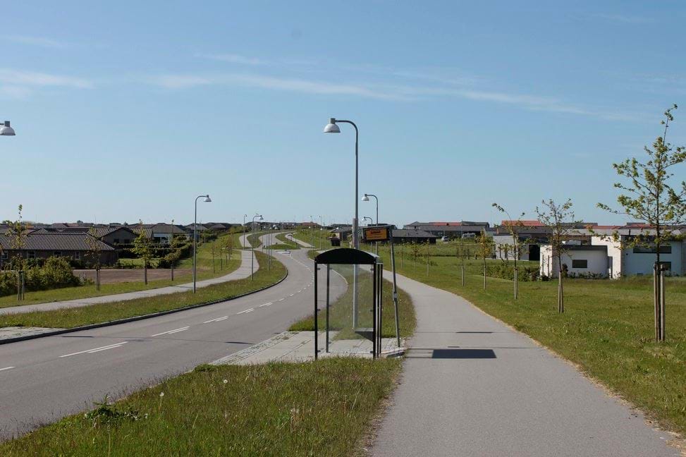 Stamvejene udlægges med græsrabat, belysning, vejtræer og fællesti i den ene side. Stamvejene skal have et udlæg på 12-15 meter. Boligveje anlægges med græsrabat i begge sider og vejtræer, samt belysning i den ene side. Nye boligveje skal have et udlæg på 8-10 meter. Der anlægges minimum 2 p-pladser pr. åbent-lavt byggeri og 1,5 pr. bolig i tæt-lavt byggeri med individuel parkering.