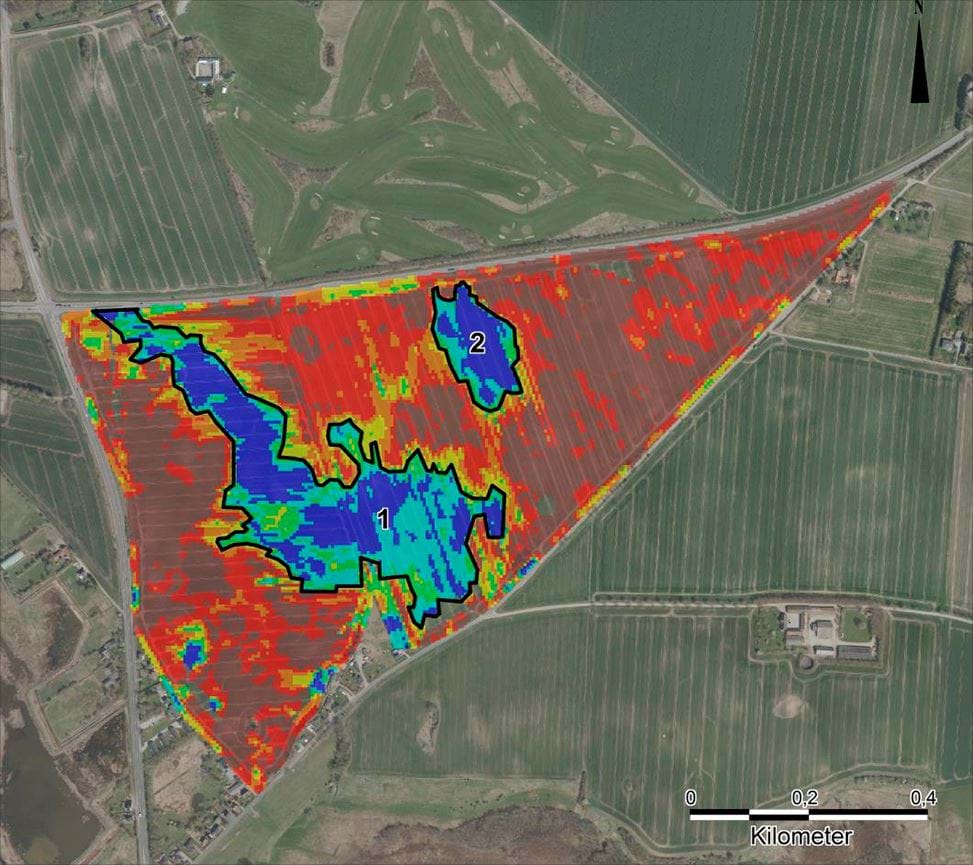 Jordbundsanalyse af lokalplanområdet - Områderne 1 og 2 vurderes at være mest egnede til nedsivning.