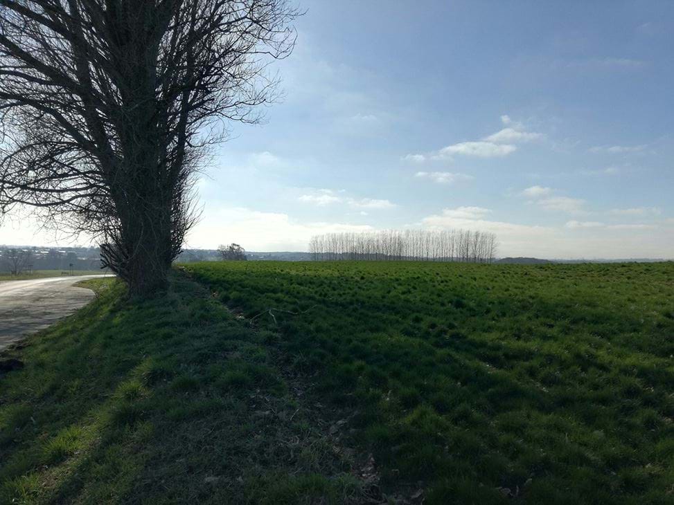 Kig mod lokalplanområdet fra den sydlige del af Nørrestrand. Grundet stigningen i terræn er det kun beplantningen der synlig.
