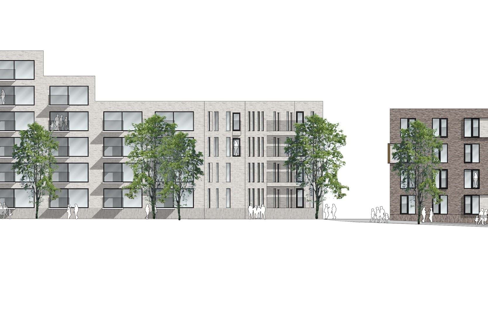 Facadeudsnit af bygninger i byggefelt I og III.