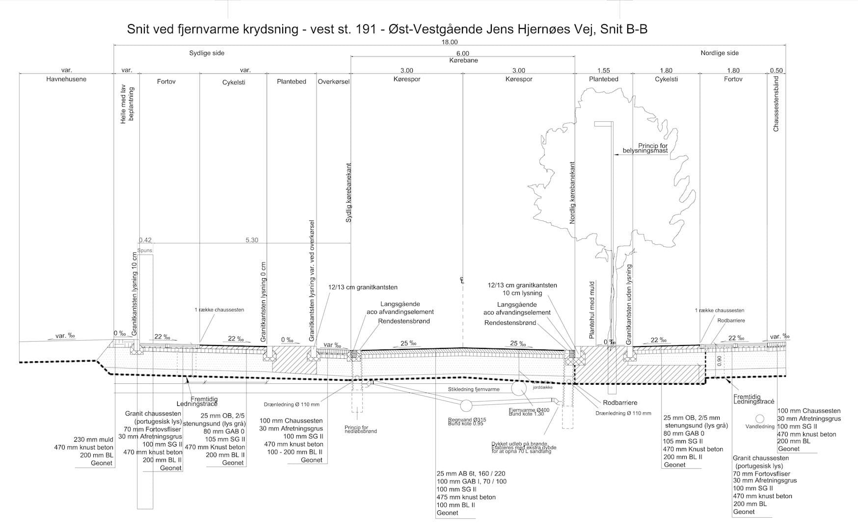 Referencer på typer af belægning mellem byggefelt I og II.