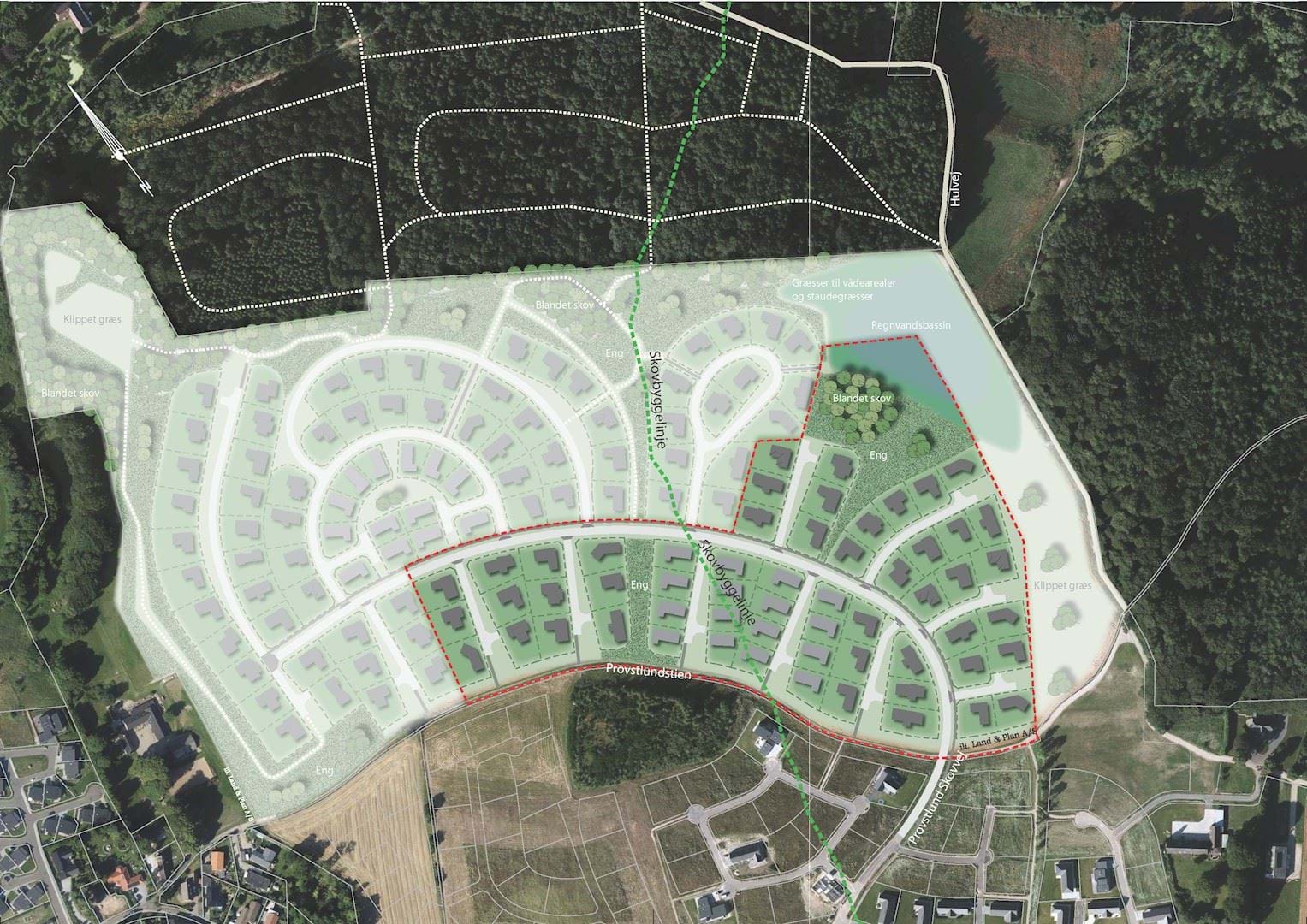 Omkring skovene mod nord og øst er der en 300 meter skovbyggelinje. Realiseringen af lokalplanen forudsætter, at Miljøstyrelsen ophæver eller reducerer skovbyggelinjen inden for lokalplanens område.
