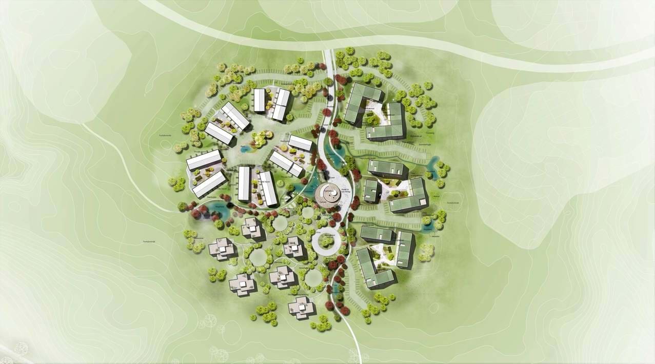 Bebyggelsesplan fra skitseprojektet der indgik i det vindende tilbud