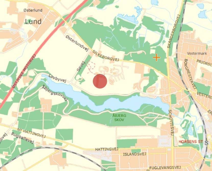 Områdets beliggenhed nord for Bygholm Sø