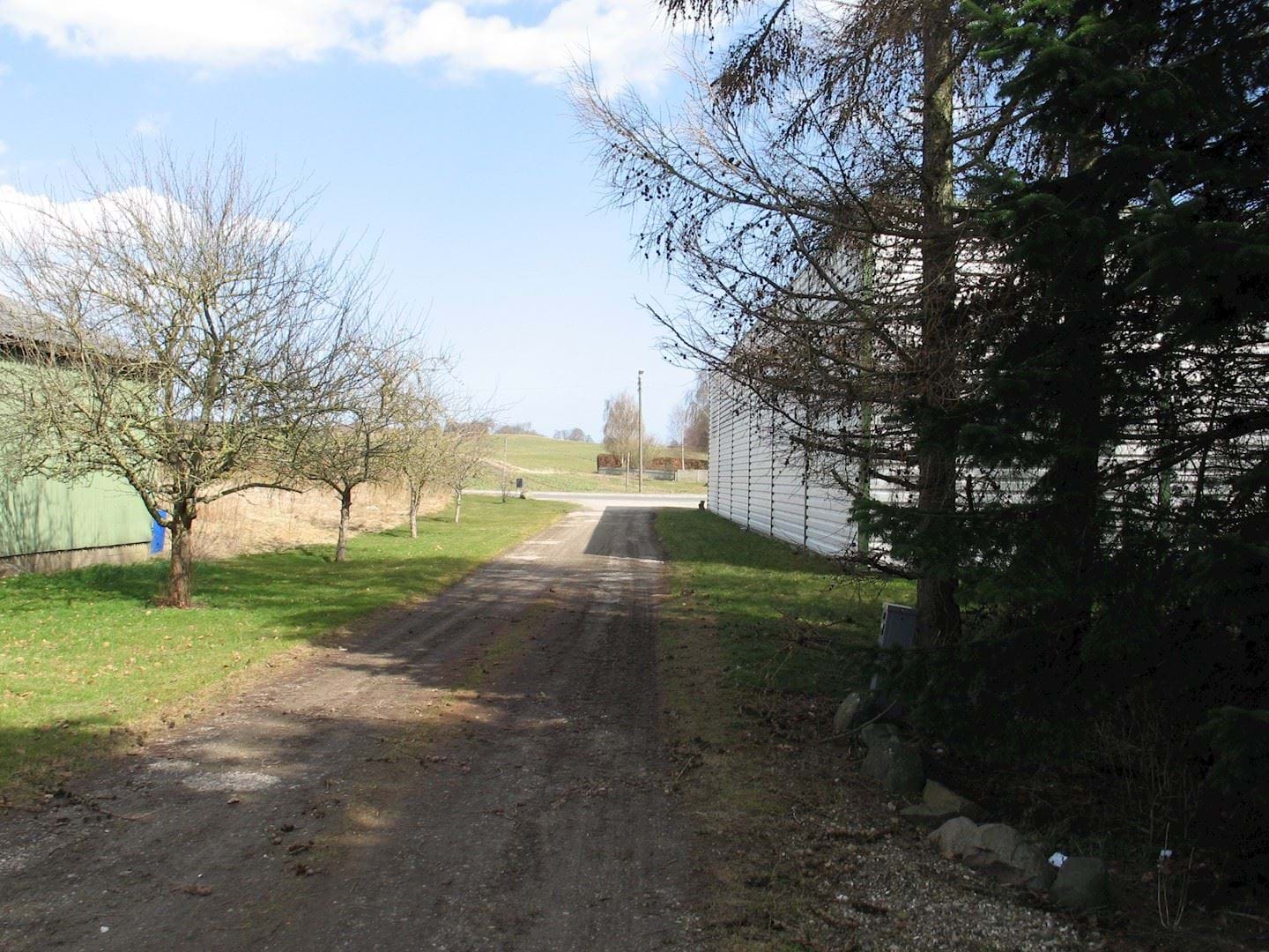 Lokalplanområdets sydlige skel mod Søvind Mejeri. Billedet er taget fra vest mod øst.