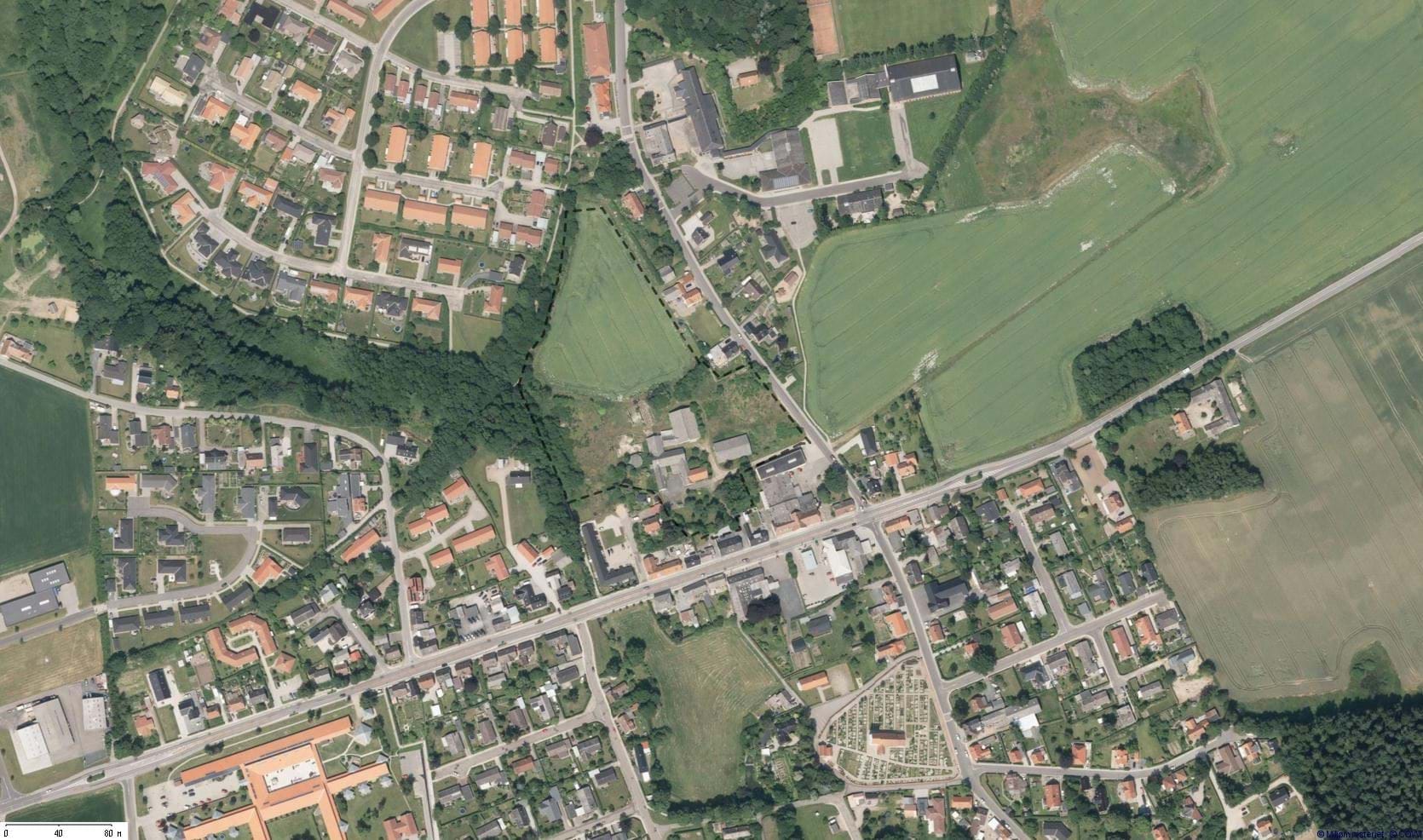 Nederst: Et kig i lokalplanområdet, fotoet er taget ca. midt i området med kig fra syd mod nord.