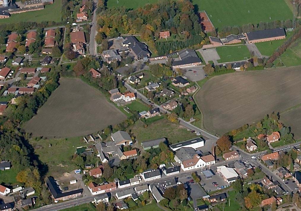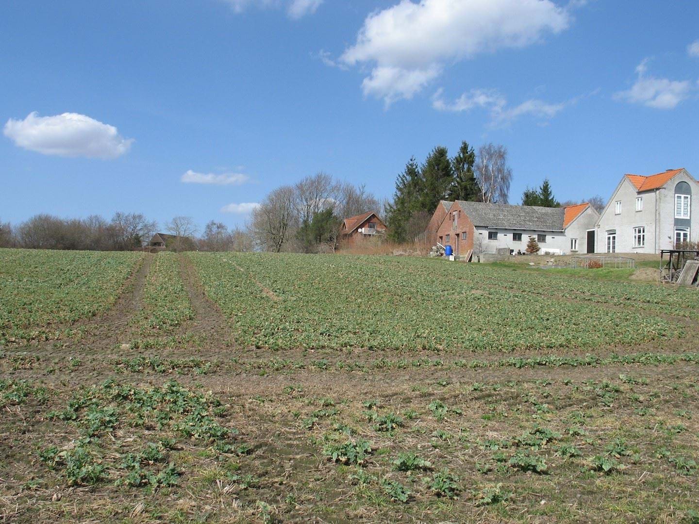 Til venstre: Den eksisterende landbrugsejendom i lokalplanområdet.