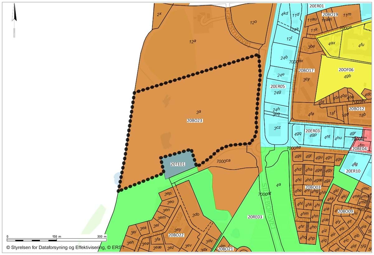 Lokalplanen ligger i rammeområde 20BO23, der giver mulighed for åben-lav og tæt-lav boligbebyggelse i op til 2 etager i maksimalt 8,5 m. højde, og med en bebyggelsesprocent på 30 for åben-lav og 40 for tæt-lav.