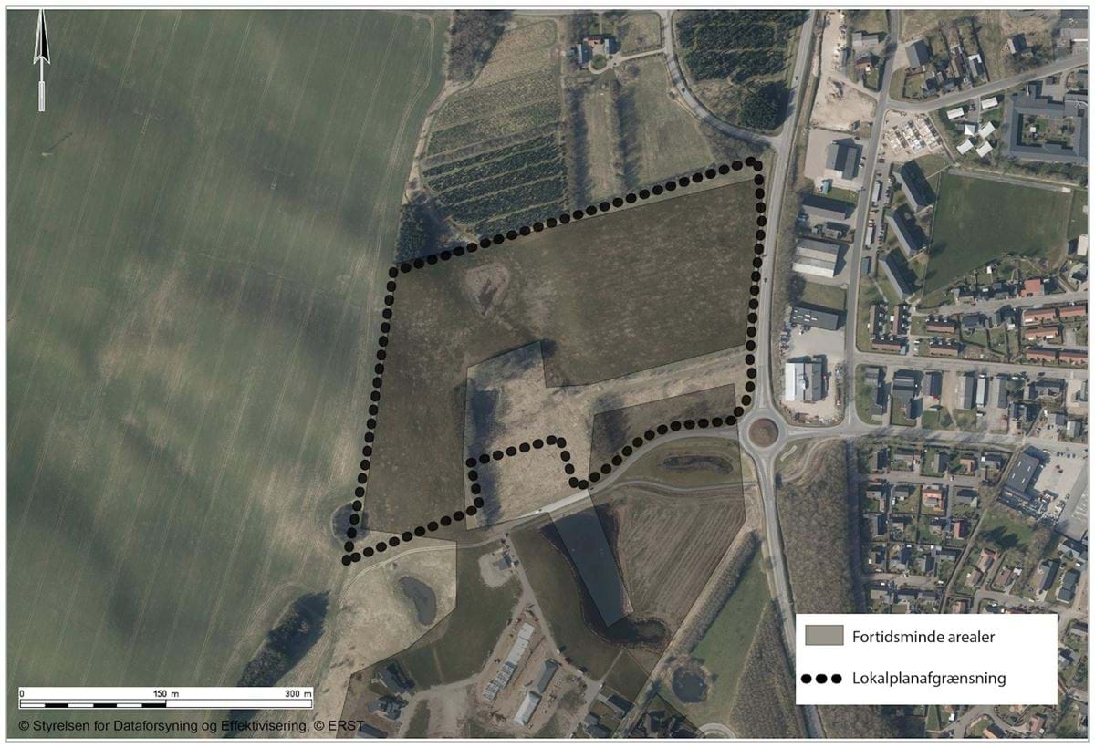 En stor del af lokalplanområdet er omfattet af fortidsmindeareal – hus med stald fra oldtiden.