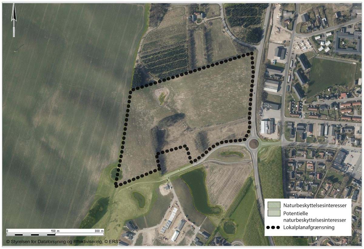 I forbindelse med udarbejdelsen af denne lokalplan er der blevet foretaget en undersøgelse af Horsens Kommune Teknik og Miljø ift. mulige naturbeskyttelsesinteresser, som resulterede i, at et nyt område indenfor lokalplanområdet blev kategoriseret som § 3 naturbeskyttet område, foruden de to områder der allerede er registreret i dag, se nedenstående billede.