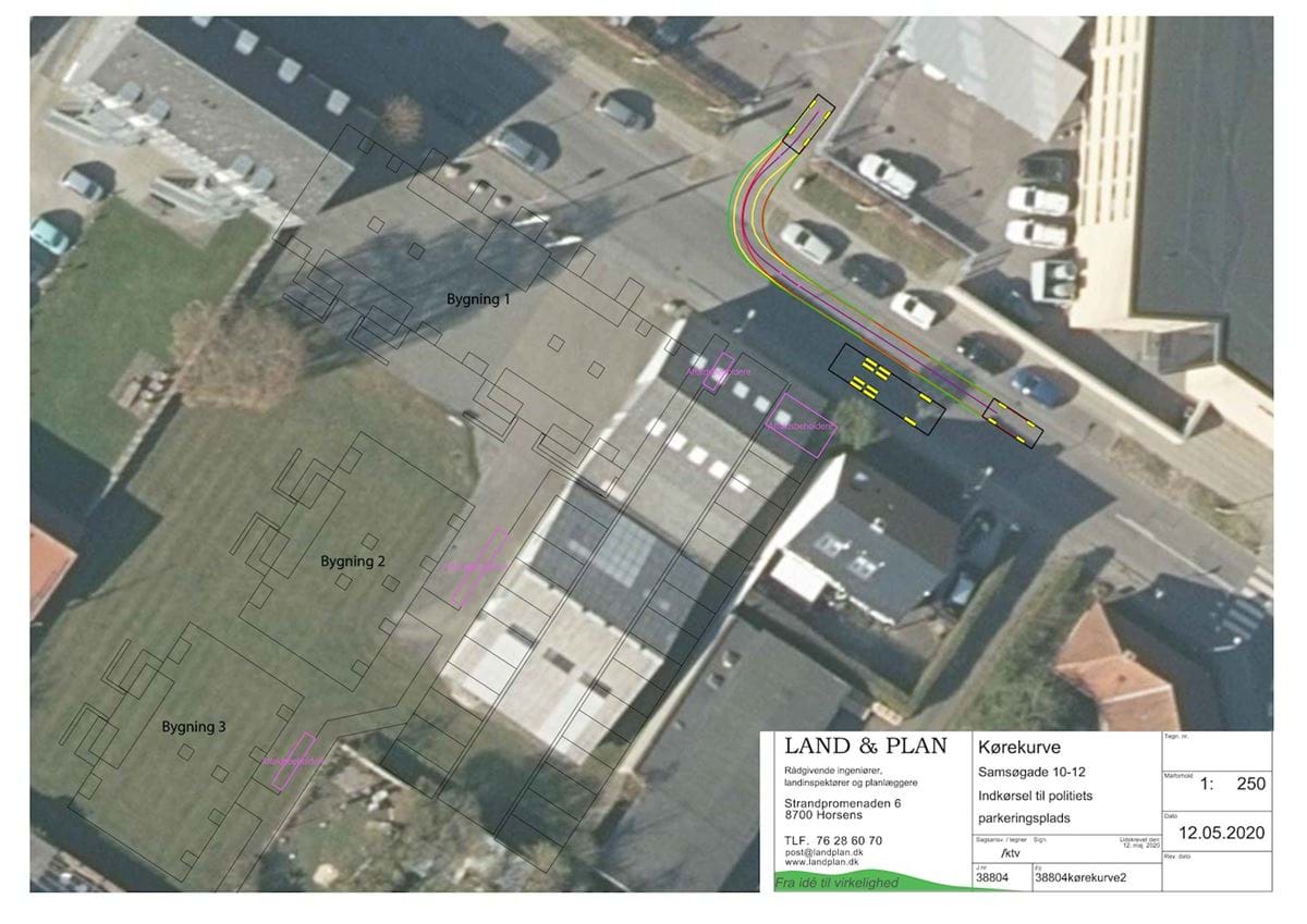 Kortbilag 5 - Kørekurver, indkørsel til politistationen.
