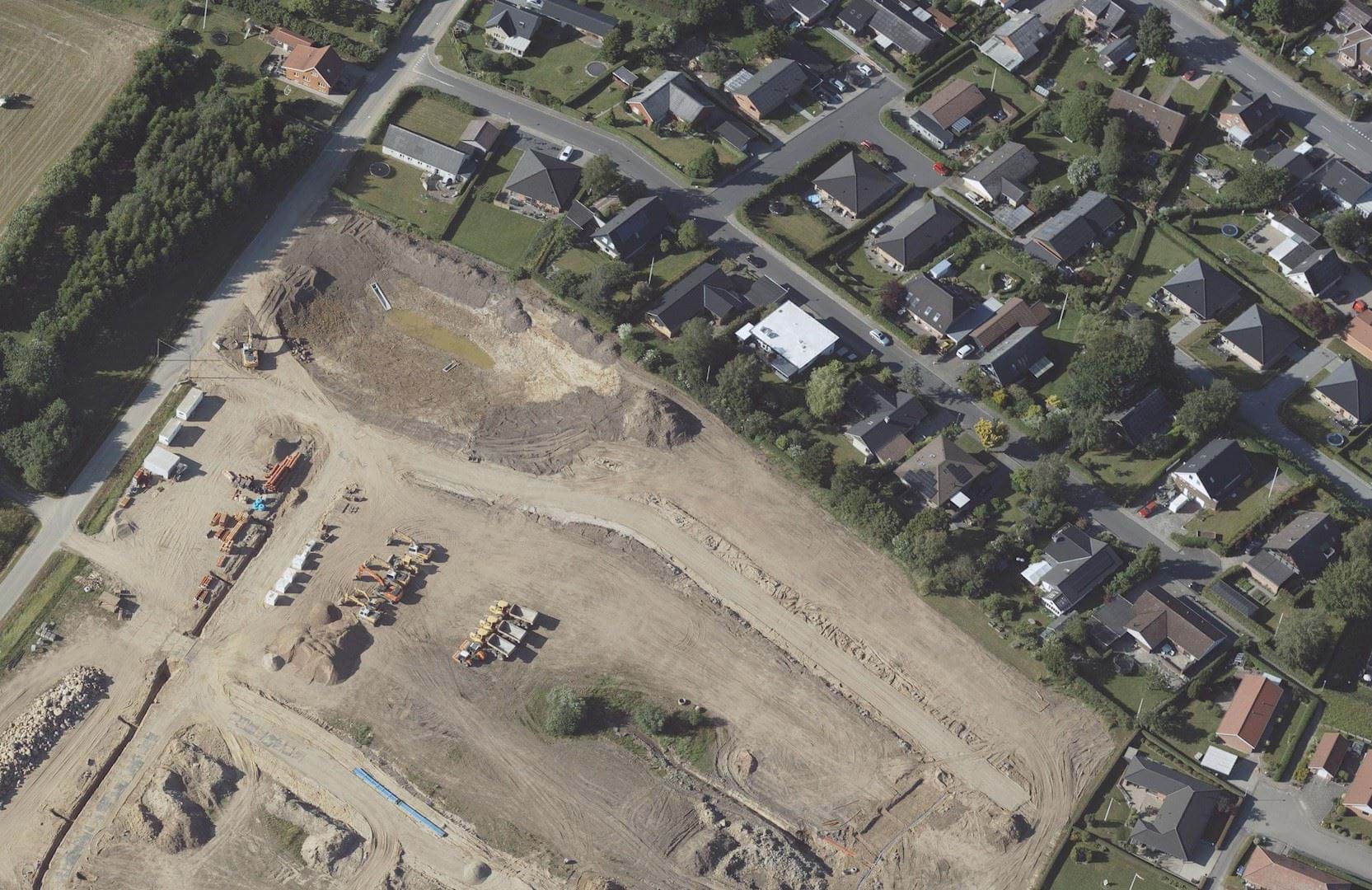 Skråfoto, fra den 29/6-2019, der viser eksisterende beplantning i det nordlige skel.