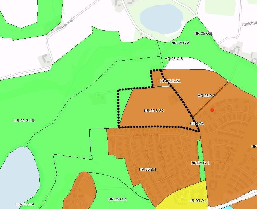 HR.05.B.27 (Områdets anvendelse fastlægges til boligformål; åben-lav og tæt-lav med tilhørende nærrekreative arealer, butikker og kollektive anlæg til områdets forsyning; institutioner og lignende offentlige formål) og