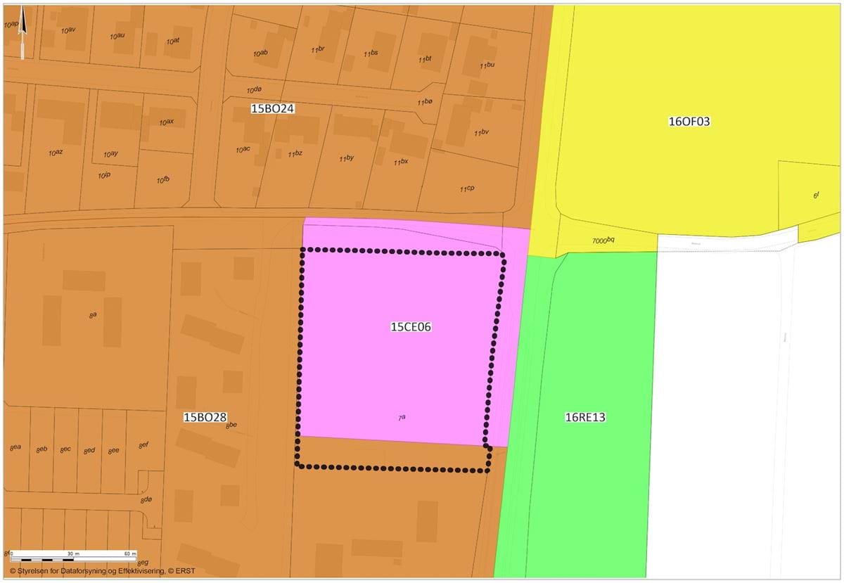 Kommuneplanramme 15CE06 udvides med et kommuneplantillæg, der får sammenfald med den sydlige lokalplanafgrænsning.