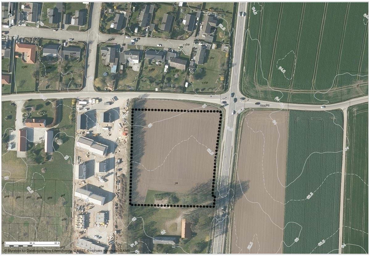 Området der planlægges for ligger i Horsens bys allersydligste del ved en af byens største trafikårer, Bjerrevej. Der er tale om en hjørnegrund på ca. 9.500 m2, som frastykkes en tidligere landbrugsejendom og ligger som et fladt areal i nogenlunde samme kote som de nedenfor nævnte vejanlæg. Grunden ligger ved den relativt nyanlagte Højagergårdsvej, (den tidligere Ørnstrup Møllevej) som er den østlige adgangsvej til et nyt boligområde, som kan rumme mellem ca. 250 - 300 boliger. Ved landbrugsejendommen er der eksisterende træbeplantning, som afgrænser indkørslen fra Bjerrevej, til den tidligere landbrugsejendom.