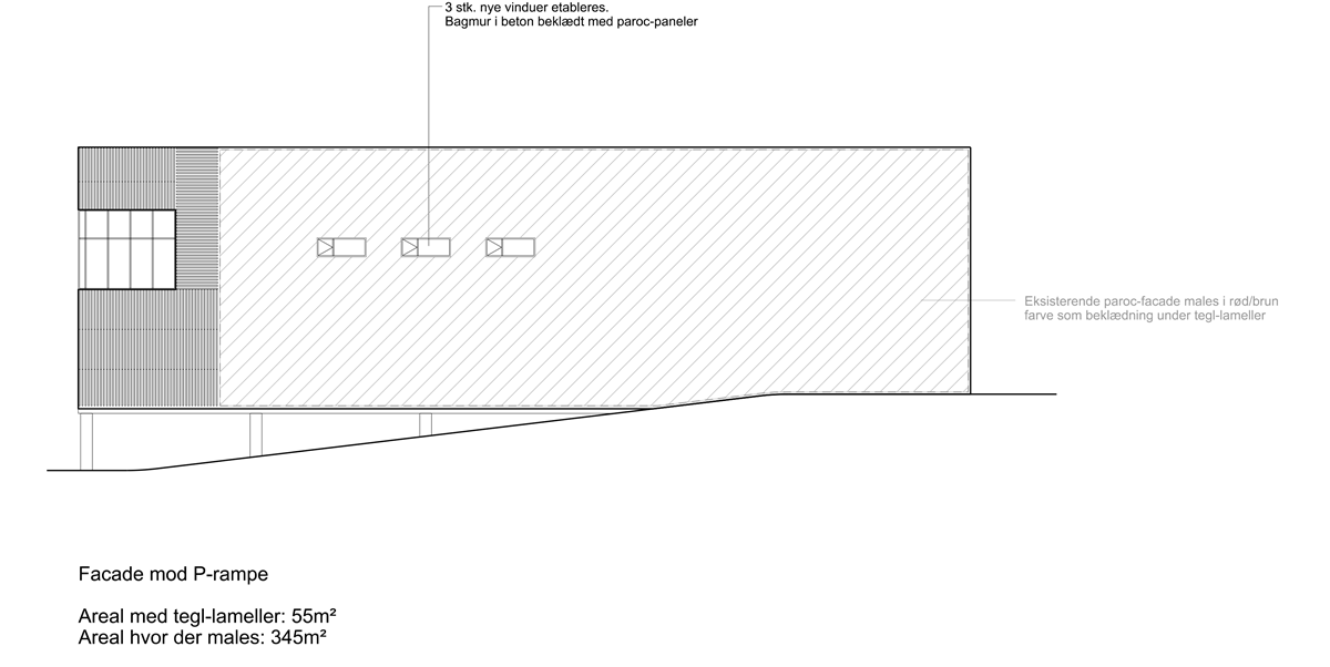 Facade set fra øst mod vest, ved rampe mod Rådhustorvet.