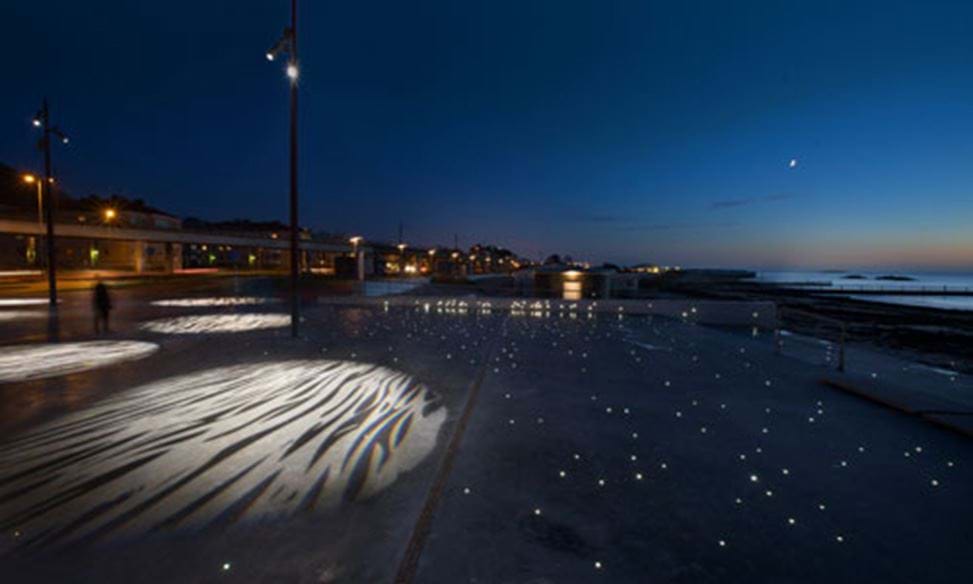 Lyssætningen danner mønster på belægningen. Mønstret kan skiftes ud ved særlige arrangementer og højtider.