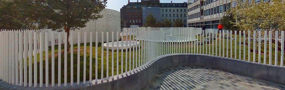 Grafiske mønstre, inventar og beplantning i en samlet helhed.