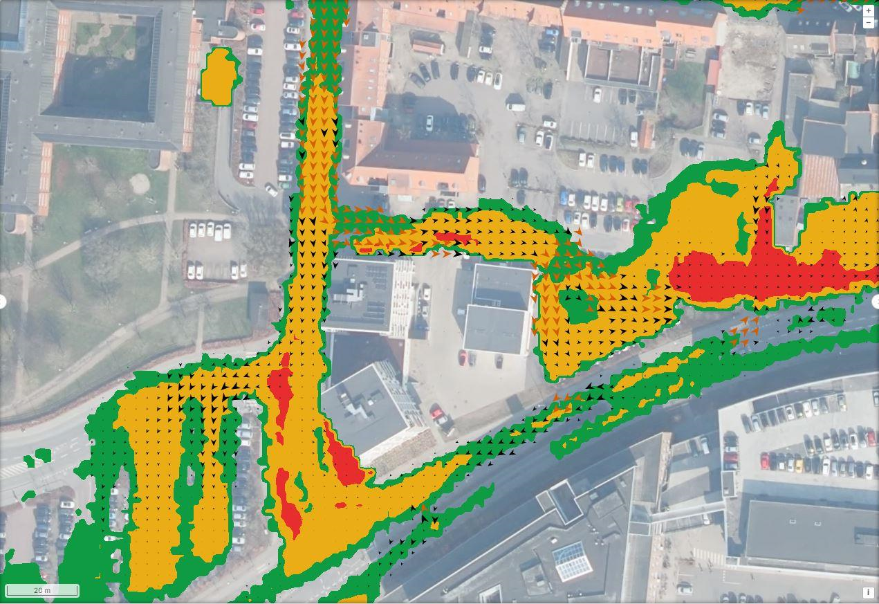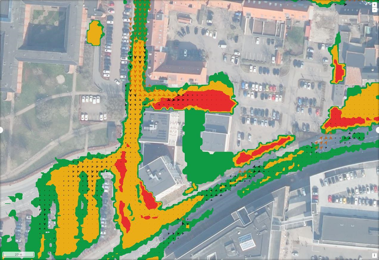 Vandhåndteringsplan 100 års hændelse (nuværende situation).