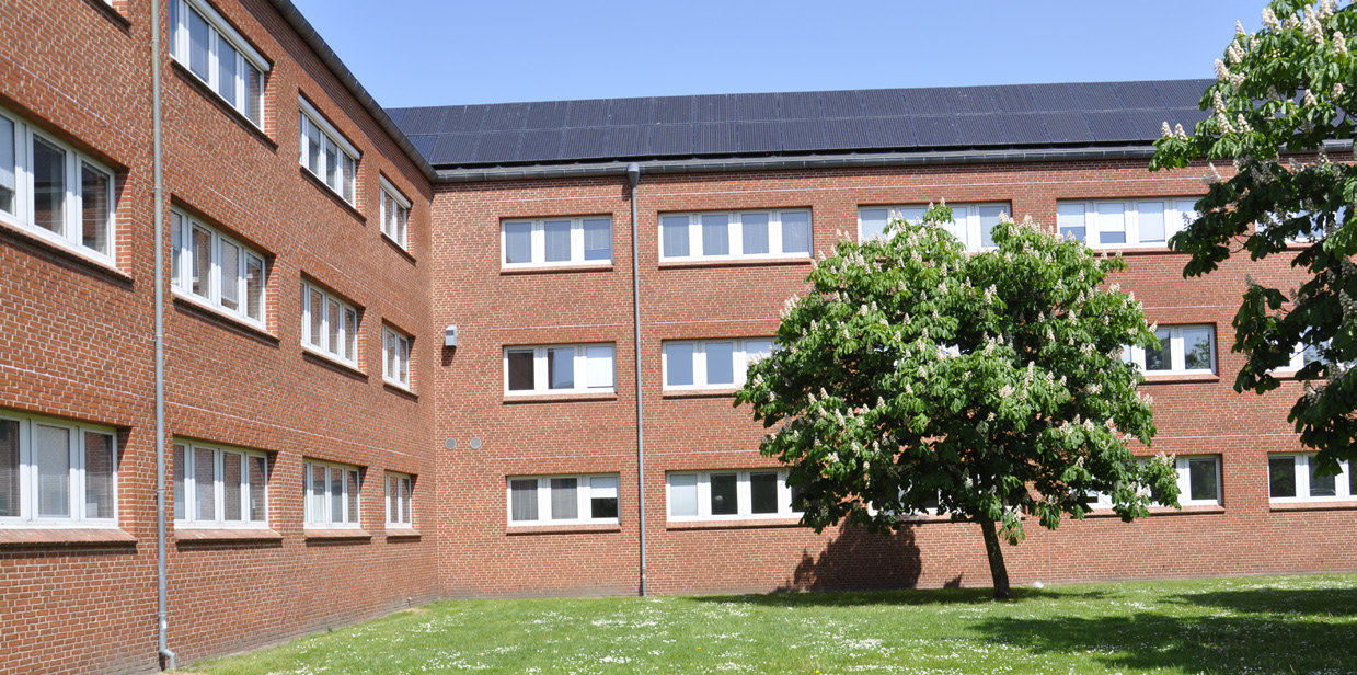 Gårdrummene har hvert deres udtryk og har forskellige træer og belægninger, fra pigsten, til små landskabelige høje med højt græs og kunstværker i midten, samt små uderum dannet af buske og træer.