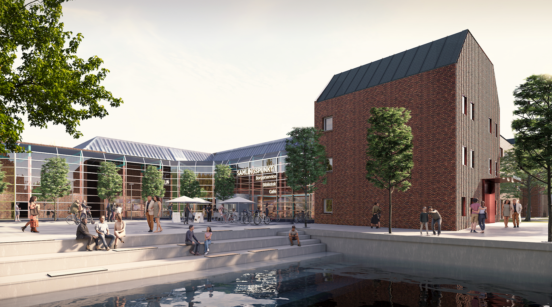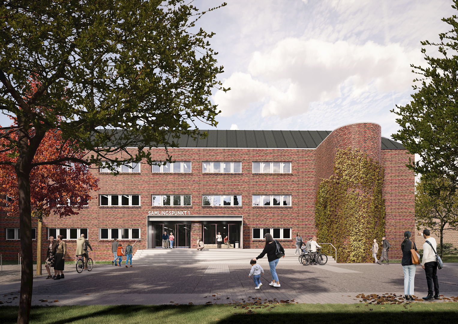 - I tillæg til Torvet, Parken og gårdrummet etableres en ny ankomstplads mod sydøst. Denne plads indrettes med elementer af eksisterende belægninger samt nye belægninger.