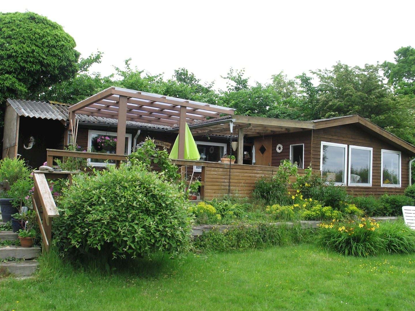 Et andet fint hus. Beplantningen omkring terrassen passer også godt ind