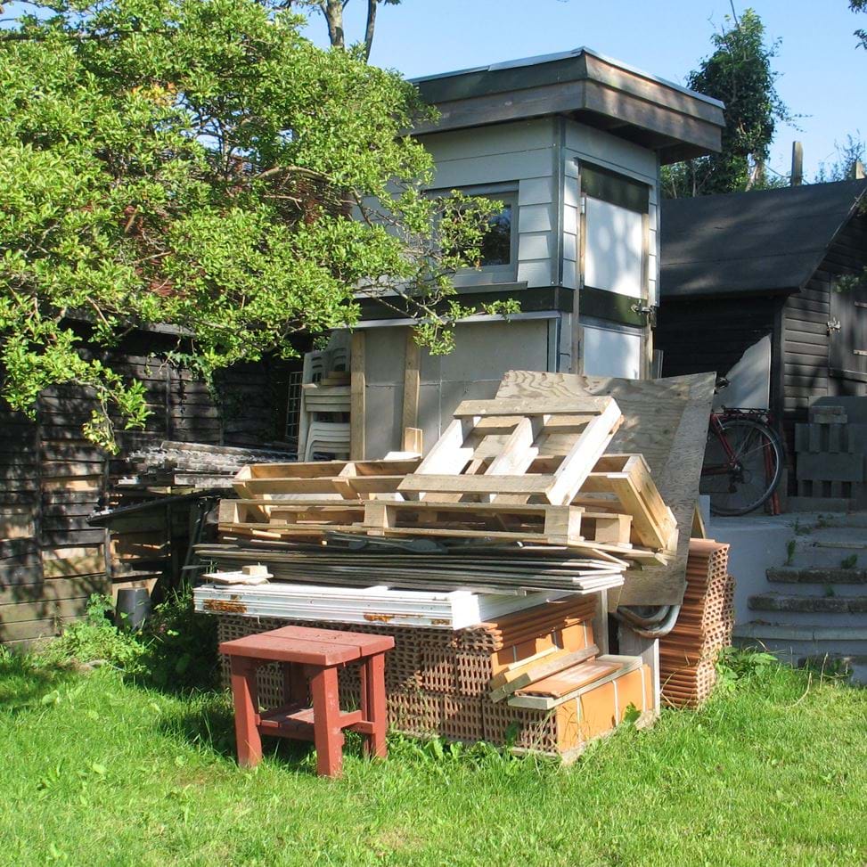 Eksempel på en bygning, der sammen med oplag af byggematerialer,er skæmmende