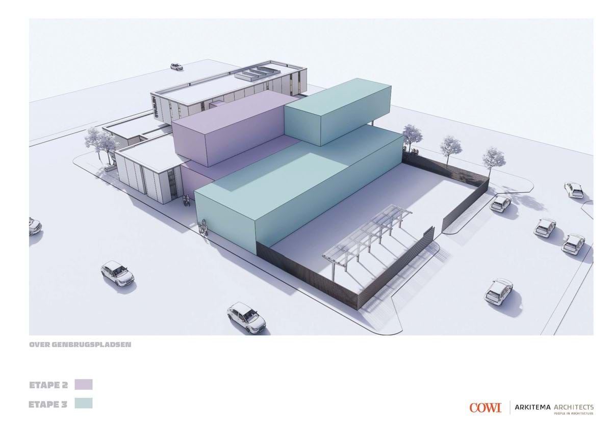 Visualisering af stablen Etape 1, set ved ankomst til genbrugsstationen på Endelavevej.